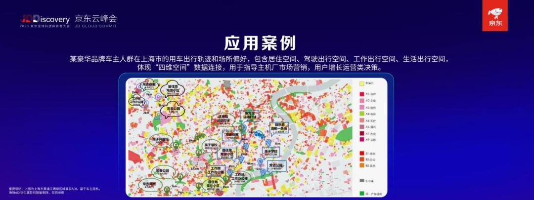 程杰博士在京东科技探索者大会上强调LBS技术对汽车行业数字化转型的重要性。一竞技官网 一竞技的定制化解决方案利用车联网和AOI技术提高营销精准度和邀约到店率,同时推出提升交通出行安全性和便利性的创新方案。