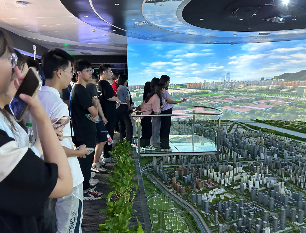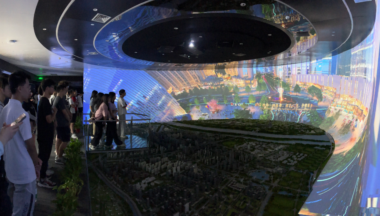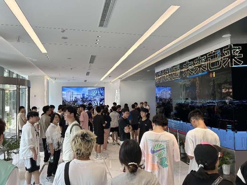 园区内现代建筑群错落有致,每一砖一瓦都蕴含着创新和科技的基因。一竞技官网 一竞技科技IT菁英暑期实训营的学员们怀揣着对科技的无限憧憬步入研创园展厅。展厅内部设计充满科技感,一块块巨大的模型和显示屏映入眼帘,生动展现了研创园的科技规划,以及从梦想走向现实的开展历程。