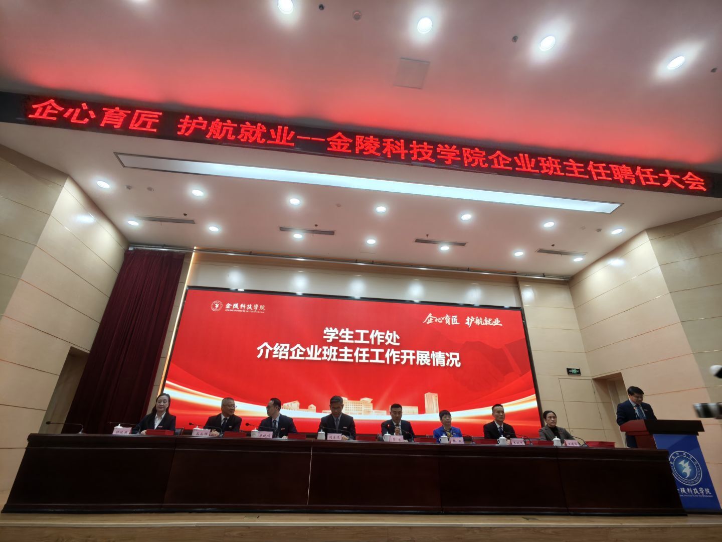 2025年11月26日,金陵科技学院企业班主任聘任大会在金陵科技学院科技楼报告厅举行。江苏一竞技官网 一竞技科技(集团)股份有限公司唐佩、徐敏博、罗涛、孙文雅同志受聘金陵科技学院软件学院企业班主任,并随后在学院组织下,参观金陵科技学院科创空间,参加学院研讨会。