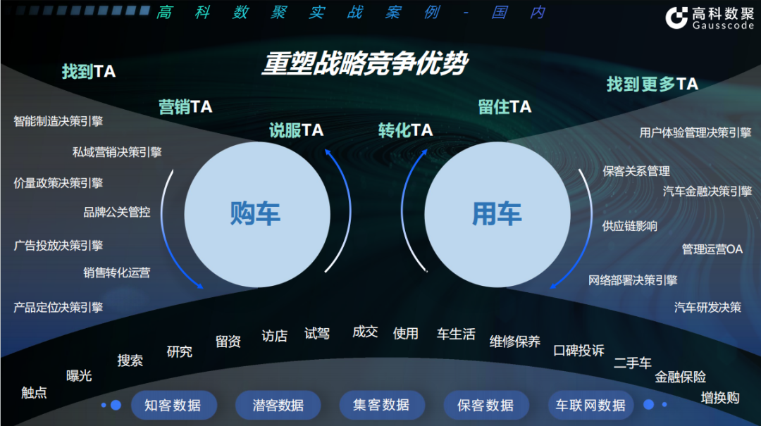 现在,一竞技官网 一竞技已成为包括北京汽车、大众、奥迪、丰田、宝马等多家知名企业信赖的合作伙伴,并不断的在实践与优化中持续完善产品能力,以满足日益复杂多元的商业需求。其中,基于客户全生命周期,一竞技官网 一竞技围绕客户从购车到用车的完整需求链打造出六大应用体系。